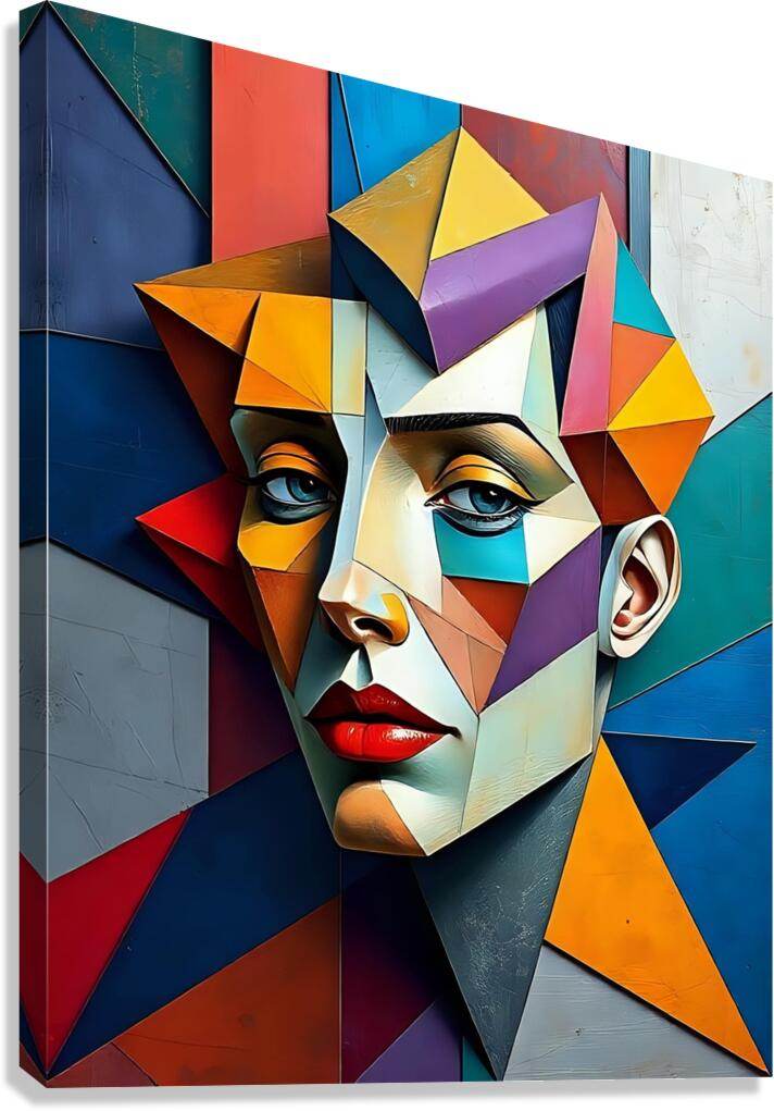 Experience the revolutionary art of Cubism Art 14 - Cubist-Geometric-Vibrant-Expressive. This stunning artwork features a captivating portrait rendered in the iconic cubist style, with bold geometric shapes and vibrant colors including brilliant yellows, deep blues, passionate reds, and striking pinks. The fragmented facial features and angular forms create a mesmerizing visual experience that captures the essence of modern artistic expression and geometric beauty.