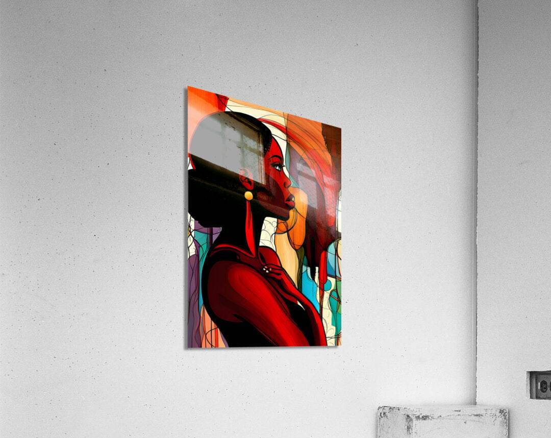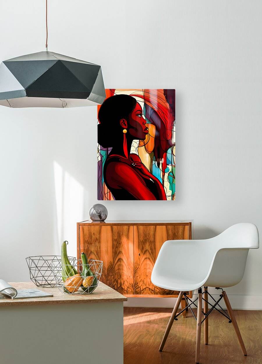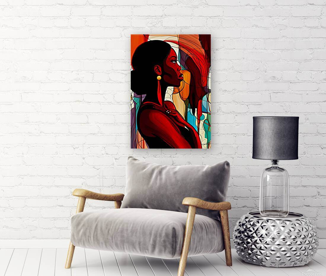 The bold artistic style and sophisticated color harmony bring personality and contemporary flair to any space with striking visual impact. The geometric background elements and expressive facial features create a conversation starter that energizes rooms while maintaining artistic elegance.