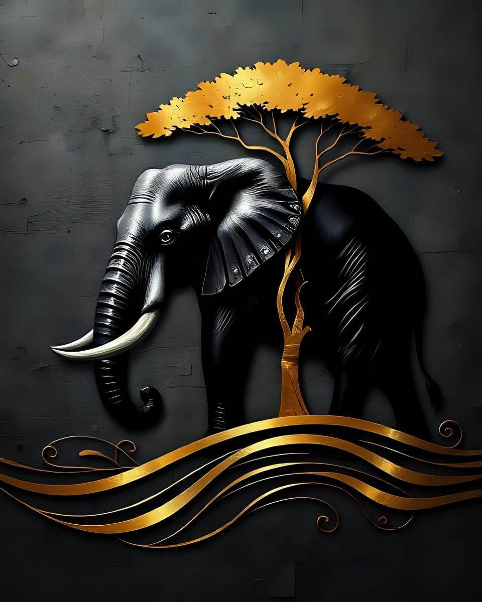 Immerse yourself in the mystique of 'Stylized Art 108', a poster that embodies a mix of the mysterious, the powerful, the romantic, the philosophical, the energetic, and the elegant. This visually stunning piece features a majestic elephant and a golden tree, symbolizing a winning strategy. It's not just a decoration; it's an experience. It's a conversation starter, a mood setter, and a statement maker all in one. Perfect for those who appreciate the finer things in life and the art of self-expression.