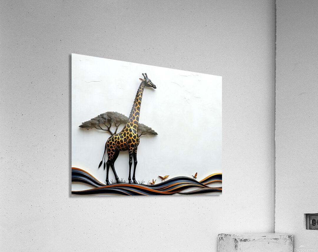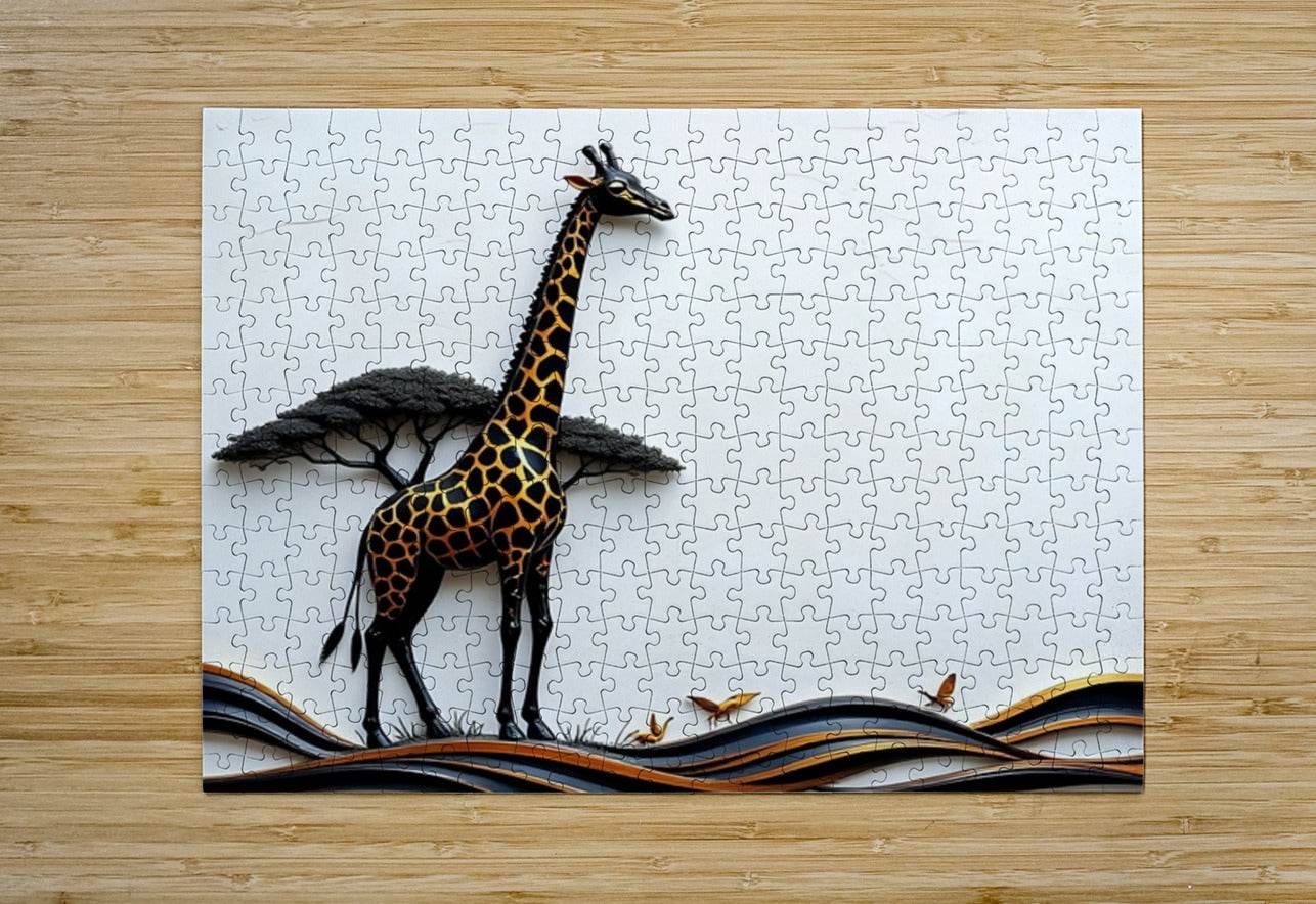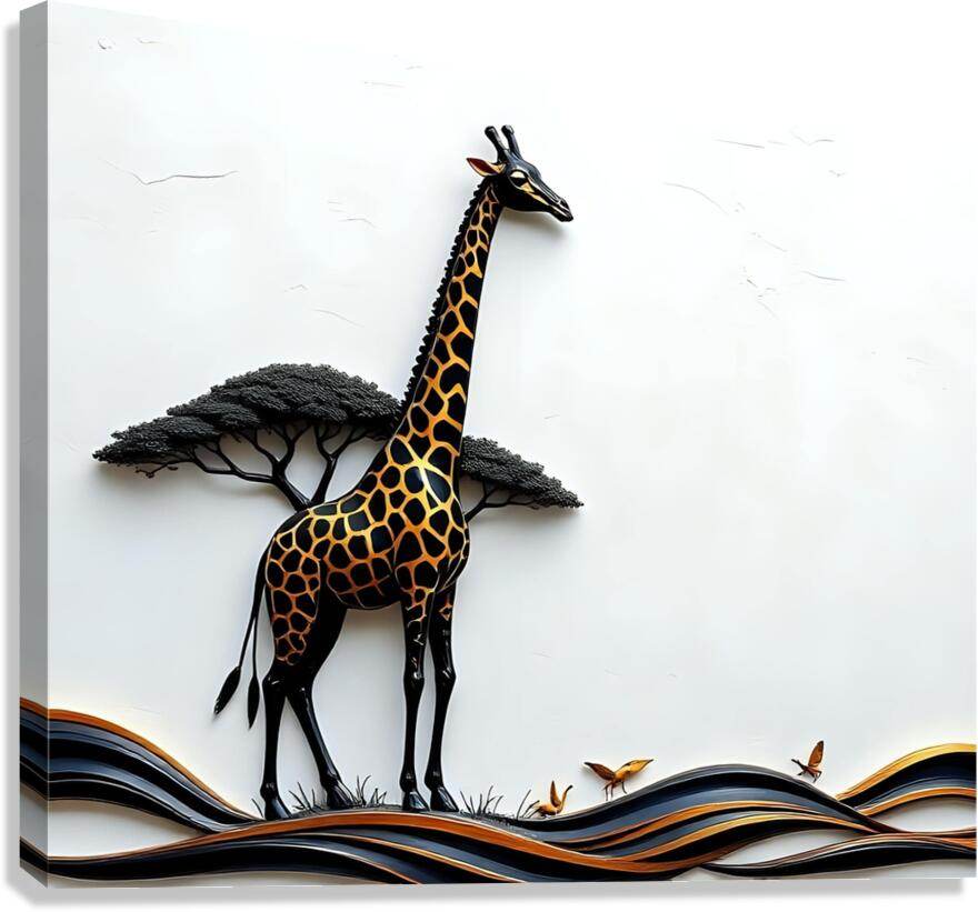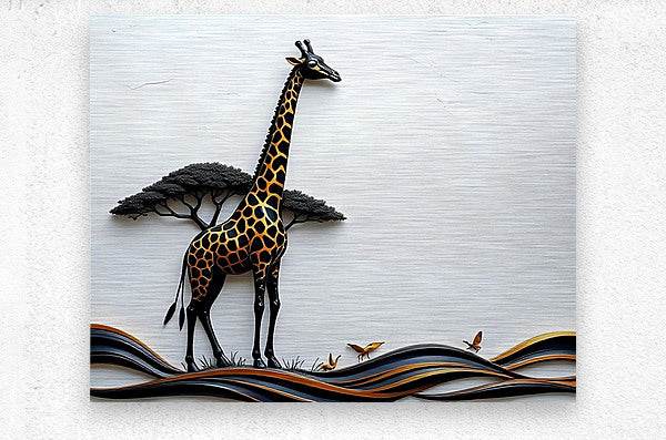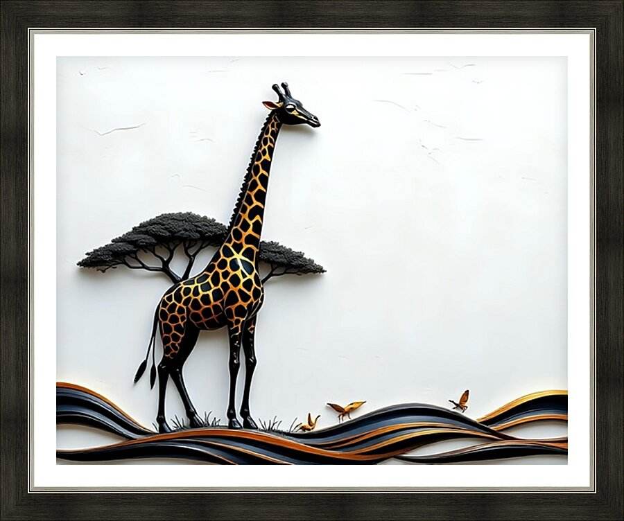 In a world where paper becomes landscape and sculpture becomes story, a giraffe stands tall beneath the iconic silhouette of an acacia tree. Stylized Art 143 transforms the African savanna into dimensional art—where layered paper creates depth and shadow, where the giraffe's elegant form rises in golden-spotted majesty, where flowing waves of earth tones at the base suggest rolling hills and endless horizons.
