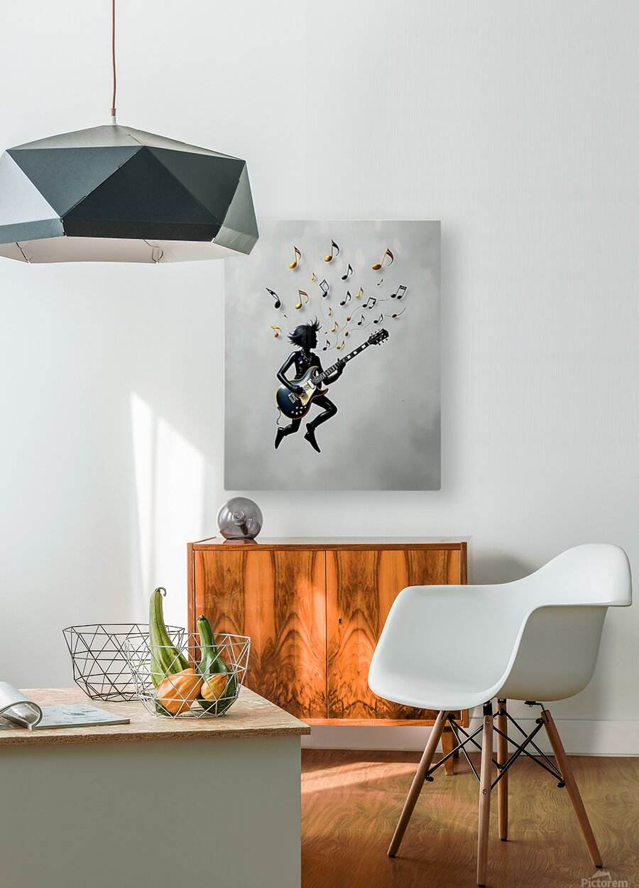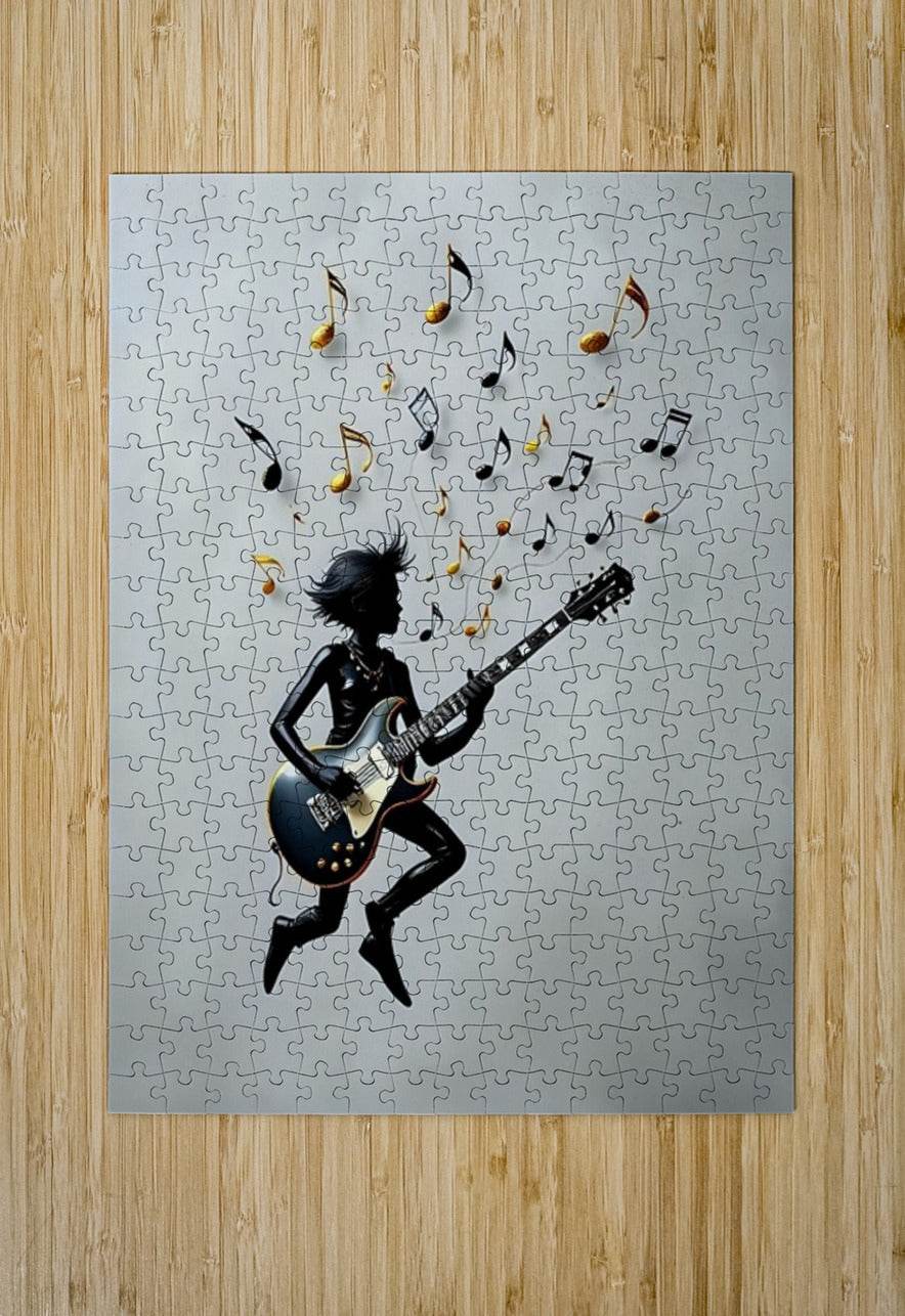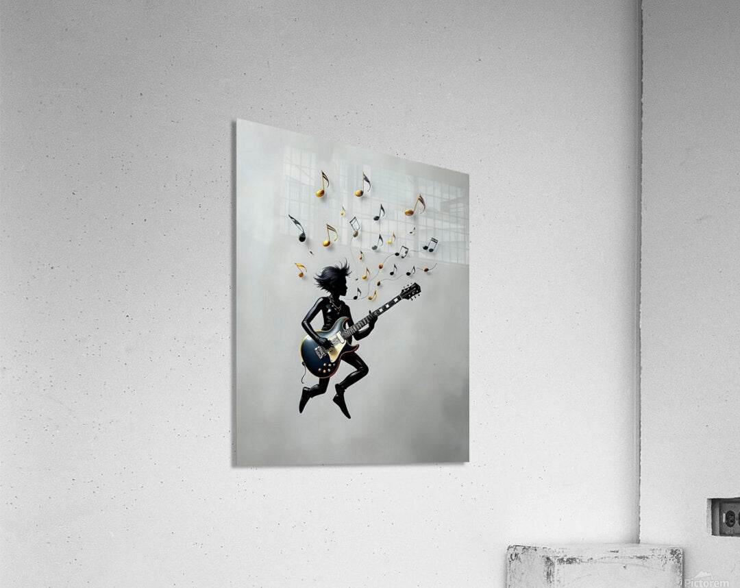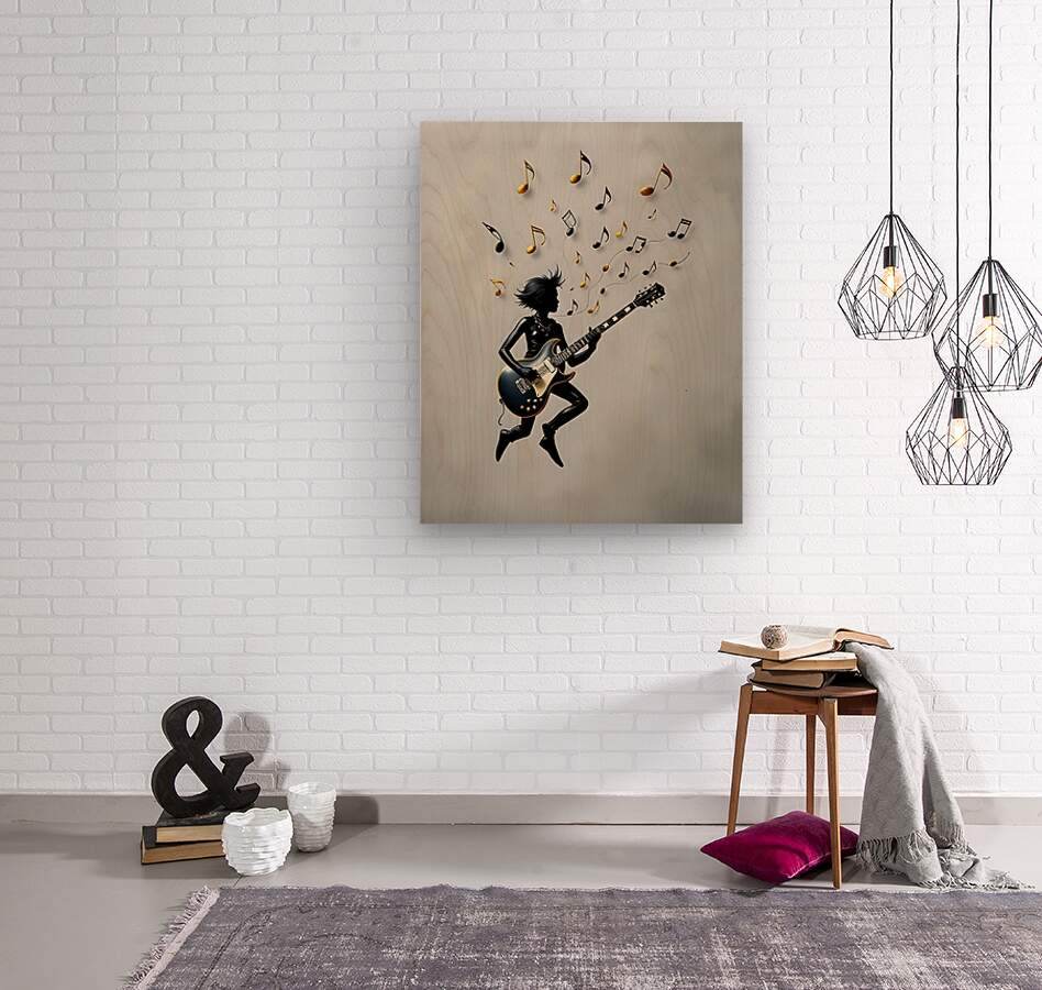 Experience the dynamic silhouette of a guitarist in 'Stylized Art 19'. This piece captures the energy of music and the dinamism of notes in a unique, artistic way. Perfect for music lovers and art enthusiasts alike.