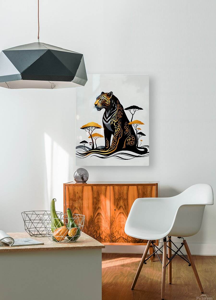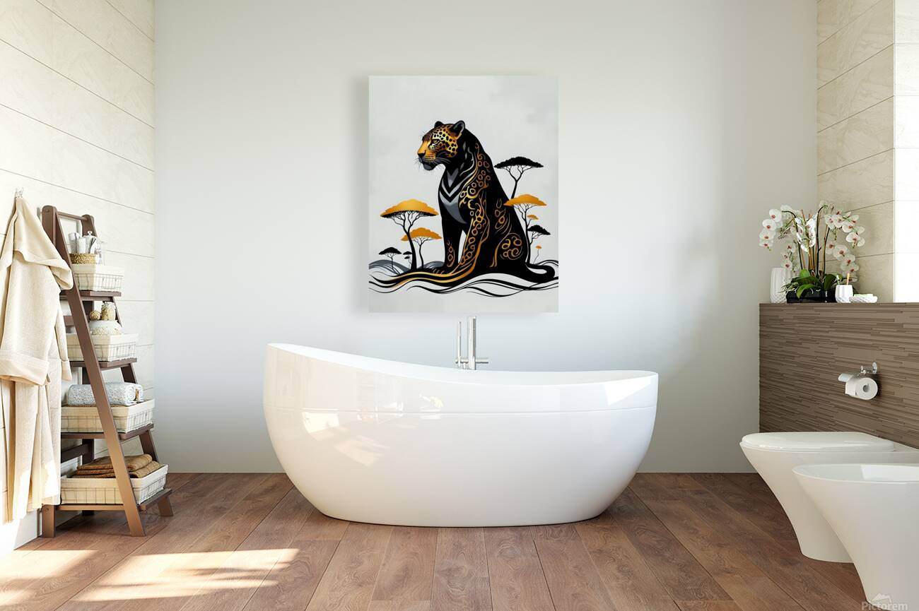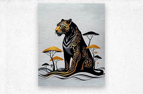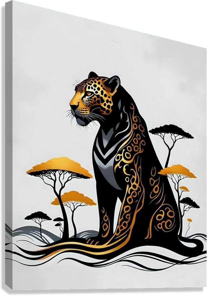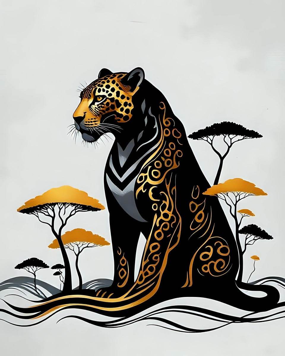 This Art Deco wildlife masterpiece brings the warm, golden spirit of African sunsets and the regal power of jaguars into your space. The sophisticated golden patterns and warm color palette create a sense of luxury and wild elegance, making it perfect for modern interiors that celebrate both artistic sophistication and the golden beauty of African nature.
