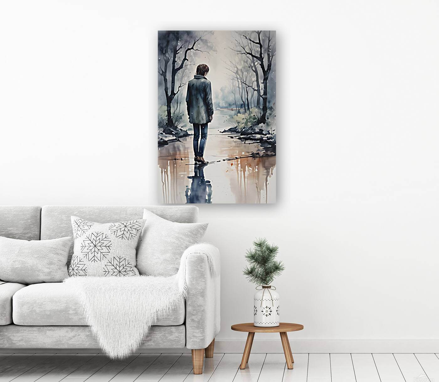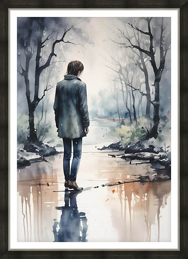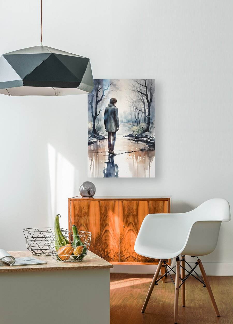 This Contemporary Watercolor masterpiece speaks to the universal human experience of solitude and reflection. The gentle watercolor technique and melancholic atmosphere create a sense of peaceful introspection, making it perfect for quiet spaces where contemplation and emotional connection are valued.