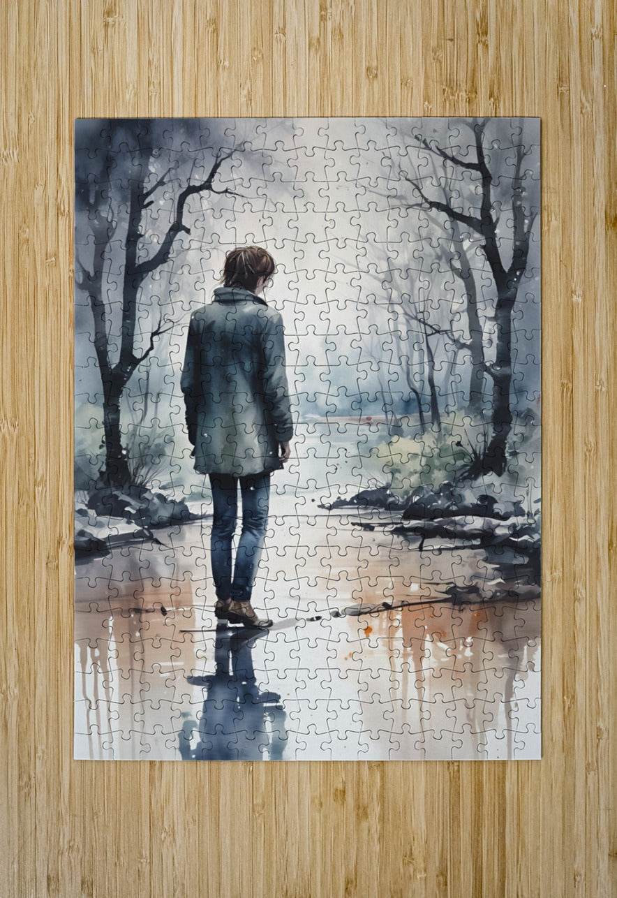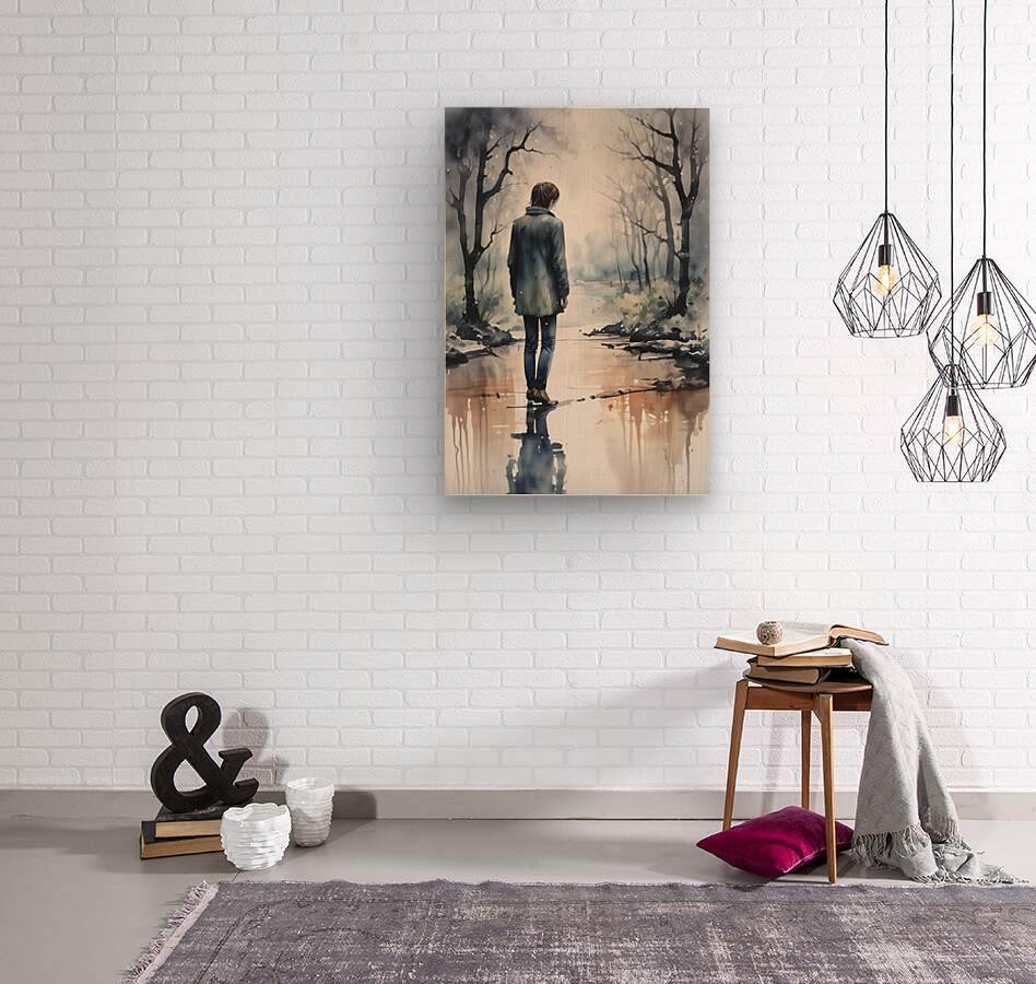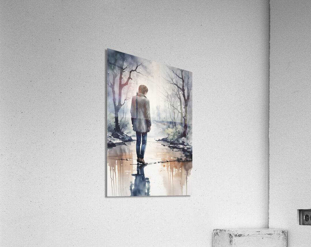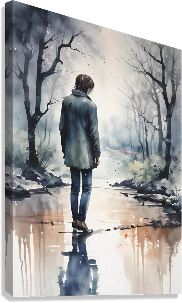 This Contemporary Watercolor masterpiece speaks to the universal human experience of solitude and reflection. The gentle watercolor technique and melancholic atmosphere create a sense of peaceful introspection, making it perfect for quiet spaces where contemplation and emotional connection are valued.